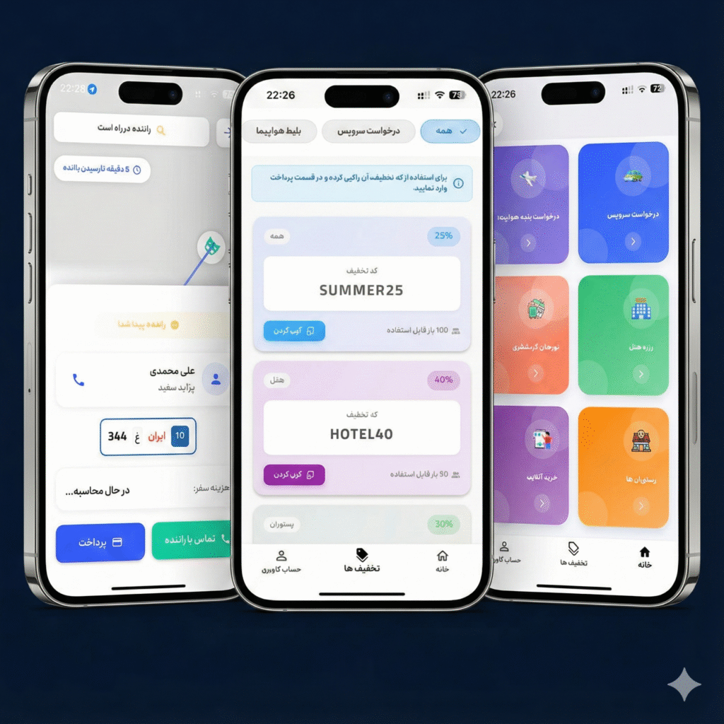 ما برای کسبوکارها اپلیکیشنهای موبایلی خلاقانه، مدرن و کاربرپسند طراحی و توسعه میکنیم. توسعه انواع اپلیکیشنهای اندروید و iOS با بهرهگیری از جدیدترین تکنولوژیها انجام میشود. طراحی رابط کاربری جذاب و ایجاد تجربه کاربری روان، از مهمترین اولویتهای ماست. با ما اپلیکیشنی بسازید که کاربران آن را دوست داشته باشند، با آن تعامل کنند و بارها به آن بازگردند.